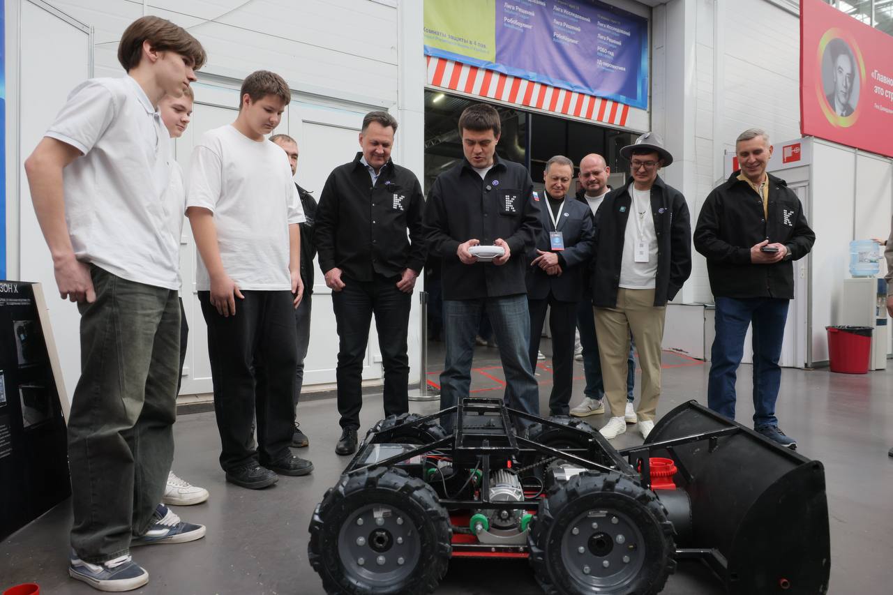 Красноярская лаборатория из 149 школы предложила технологию беспилотного уборщика снега, который летом превращается в газонокосилку. Не удержался, попробовал поуправлять сам. Впечатляет: просто, маневренно.