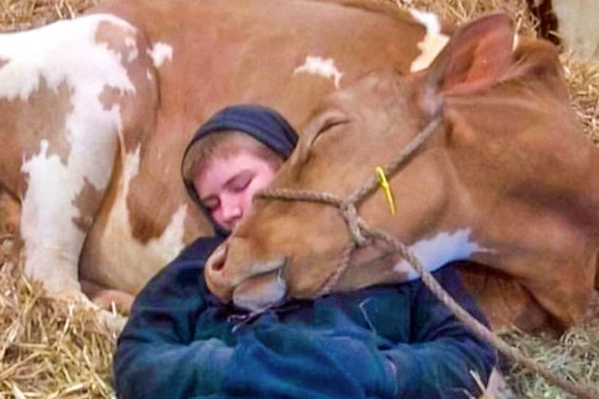 - Мальчик и корова: На снимке юный парень проводит ночь рядом с больной коровой, которая для него стала настоящим другом, а не просто источником молока.