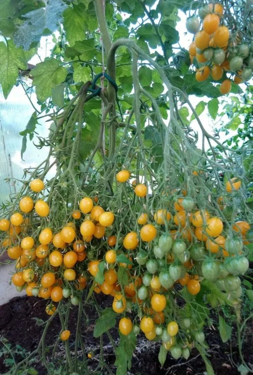 Этот сорт отличается своими мощными и высокими кустами, которые нуждаются в опоре, ведь они способны вырастать довольно большими. На каждом соцветии образуется от 8 до 10 плодов, а в лучших случаях на кисти можно увидеть до 100 томатов. Удивительное количество для любителей садоводства!