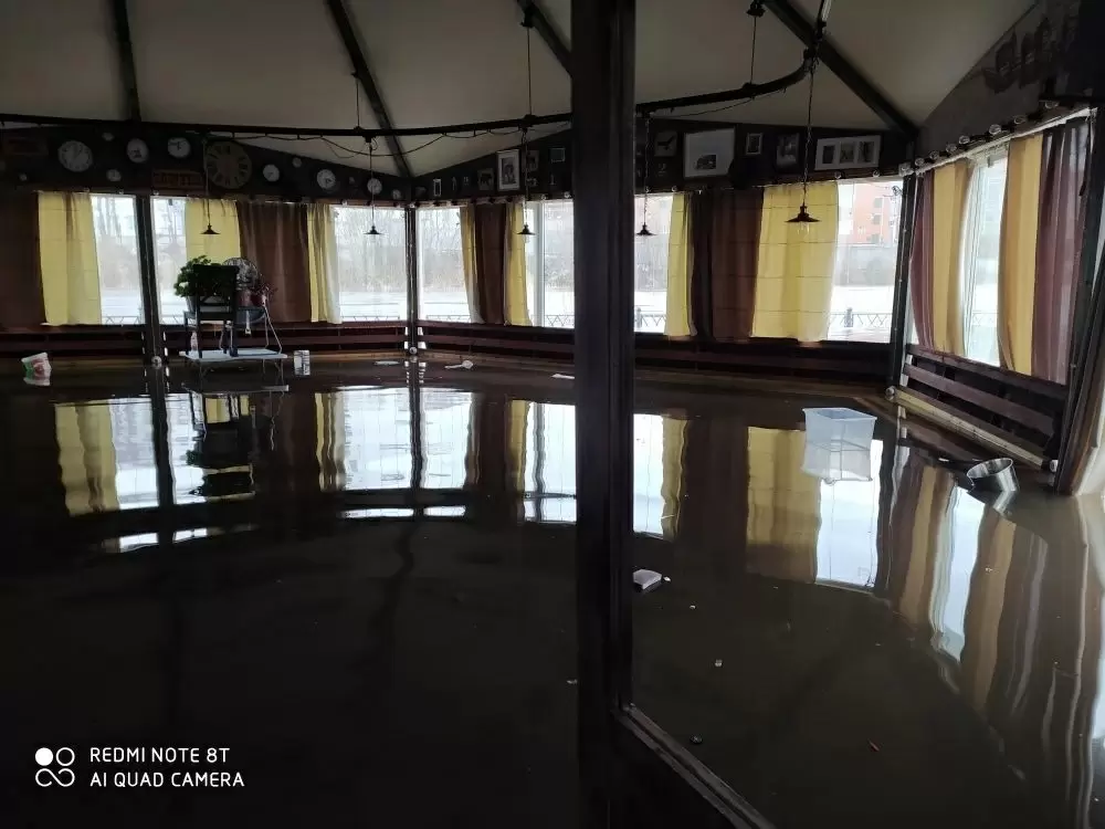 Кафе «Том Сойер», расположенное на Пролетарской набережной, оказалось под водой. Уровень жидкости в помещении достиг впечатляющих 30 сантиметров, и сотрудники заведения продемонстрировали, как теперь выглядит их рабочее пространство.