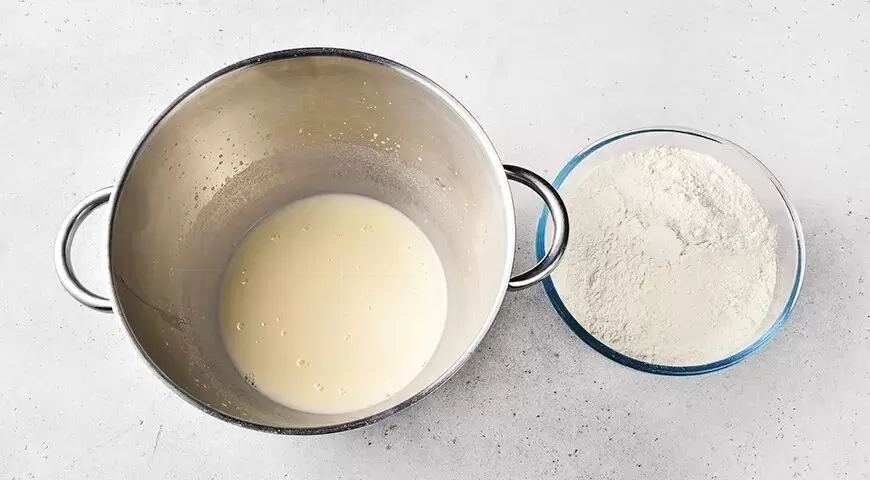 Для начала нужно просеять муку в глубокую миску, чтобы она насытилась воздухом. В другой контейнер вылить кефир, который должен быть комнатной температуры. Сюда добавить яйцо, соль и все тщательно перемешать венчиком. Затем влить растительное масло и немного водки, что придаст тесту эластичности.
