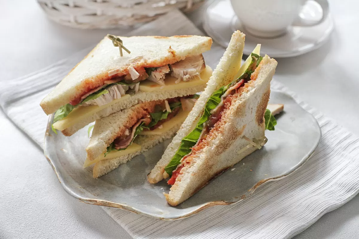 Шаг 3: Каждый поджаренный тост обильно смажьте соусом лечо. На одну половину выложите индейку, бекон, листья салата и ломтик сыра. Накройте вторым тостом и сколите шпажкой. Повторите с оставшимися ингредиентами. Употребляйте сэндвичи сразу, чтобы насладиться их неповторимым вкусом!