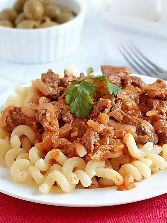 Готовую говядину с подливкой подавайте горячей с любимым гарниром, и она станет настоящим украшением стола.