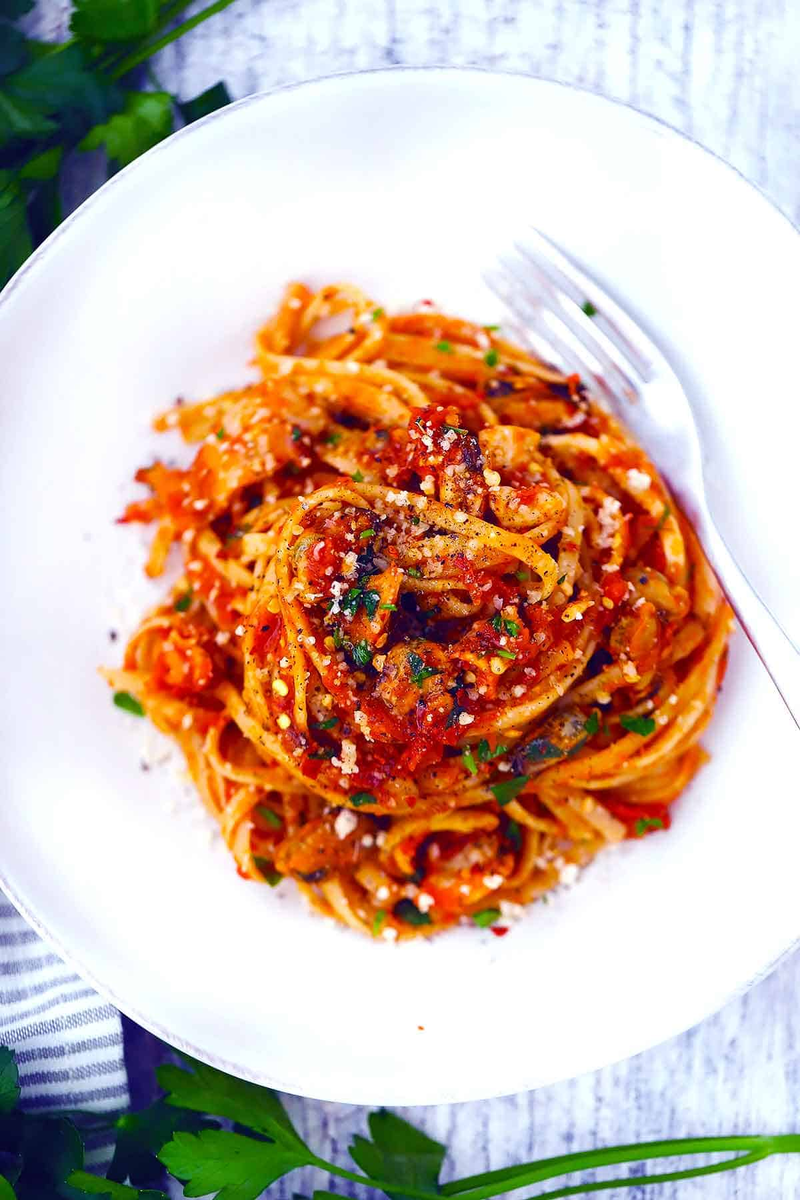 - 450 г лингвини или аналогичной пасты, такой как феттучини или спагетти