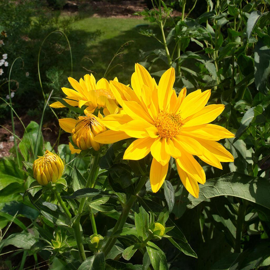 Уход за гелиопсисом минимален. Полив необходим только в засушливые периоды, а мульчирование помогает задерживать влагу. Растение также благодарно отзывается на подкормки весной и в период цветения. Обрезка и подвязка — важные меры для высокорослых сортов, чтобы они не сломались под тяжестью дождя и ветра.