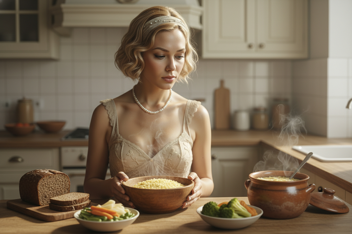 В конце XIX века стол крестьянской семьи выглядел довольно скромно: щи из серой капусты, ржаной хлеб и пшённая каша — вот и весь набор. Несмотря на простоту, именно такая пища давала такую жизненную силу, о которой современному человеку порой не суждено и мечтать. Труды на поле, в лесу или на дворе требовали больших усилий, и крестьяне не знали, что такое «выгорание». Например, пшённая каша, богатая сложными углеводами, медленно переваривалась, что обеспечивало длительное ощущение сытости и энергии для работы на целый день.