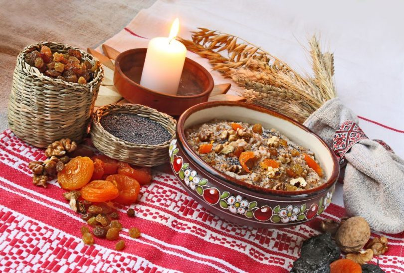 - Кутья – это обязательное угощение, приготовленное из пшеницы с добавлением меда, орехов и сухофруктов. Символизирует память о предках и желает процветание.