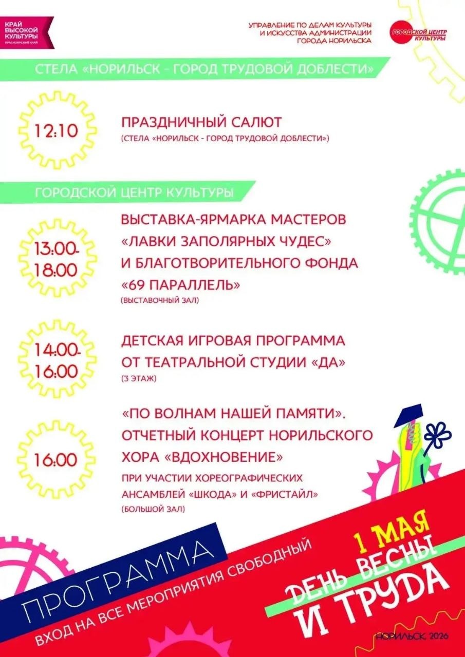 #АдминистрацияНорильска #культураНорильск #1Мая #ПраздникВесныИТруда #АфишаНорильск #ВеснаВЗаполярье